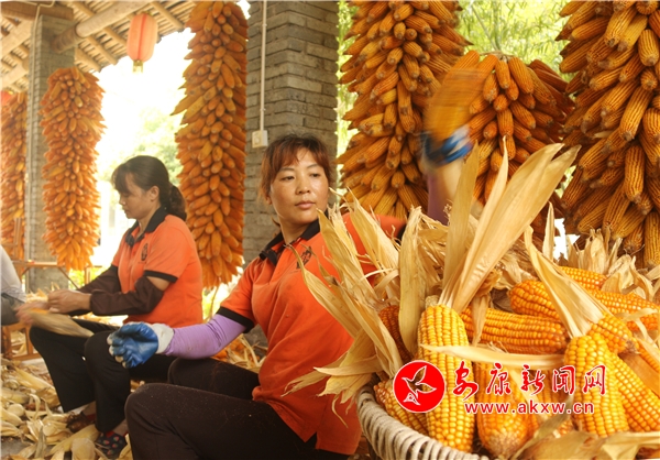 有的忙于運(yùn)送,有的忙于剝穗,有的忙于上架,豐收的喜慶洋溢在每一個(gè)角落。