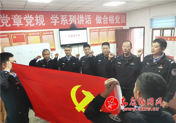 活動中,支部書記為全體黨員講了生動的一堂黨課,集體重溫了入黨誓詞,一起觀看了警示教育片《警鐘》。全體黨員干部面對鮮紅的黨旗莊嚴宣誓,重溫入黨誓詞,接受理想信念教育,心靈得到了又一次凈化。最后通過相互交流學習心得、討論各自思想感受,紛紛表示,要珍惜先輩們負重前行換來的和諧社會,努力用自己的實際行動扎實做好本職工作,以高度的政治責任感,積極為示范區(qū)人民群眾創(chuàng)造安全、暢通、有序的道路交通環(huán)境。