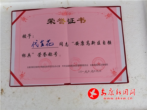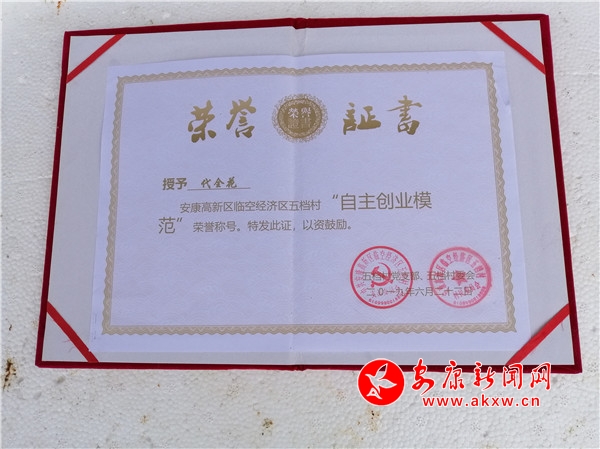 筆者從陳斌口中得知,2019年6月,代全花分別被安康高新區(qū)和五檔村黨支部、村委會(huì)授予“自強(qiáng)標(biāo)兵”和“自主創(chuàng)業(yè)模范”榮譽(yù)稱(chēng)號(hào),去年一家成功實(shí)現(xiàn)了脫貧。?