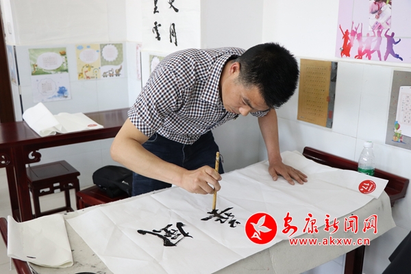 活動中,參賽選手在規(guī)定時間內(nèi),完成鋼筆字、粉筆字、毛筆字和簡筆畫創(chuàng)作。黨員教師鋼筆字和粉筆字書寫入黨誓詞,進一步錘煉了黨性,重溫了初心,堅定了不忘初心跟黨走的信心。非黨員教師硬筆書寫《清平樂·六盤山》,在感受偉人宏大氣概和紅軍北上抗日堅強意志的同時,激發(fā)了大家為黨育人、為國育才的不竭動力。整個比賽過程,選手們潑墨揮毫、激烈角逐,憑借著過硬的專業(yè)技能和深厚的文化素養(yǎng),在短短40分鐘內(nèi),將一幅幅規(guī)范、簡潔的書畫作品呈現(xiàn)在大家眼前。毛筆字或氣勢磅礴或剛?cè)岵讳摴P字或筆順流暢或秀氣雋美;粉筆字或清新端正或大方得體;簡筆畫或勾勒簡潔或陽光活力,充分展現(xiàn)了安康高新區(qū)教師扎實的教學基本功。