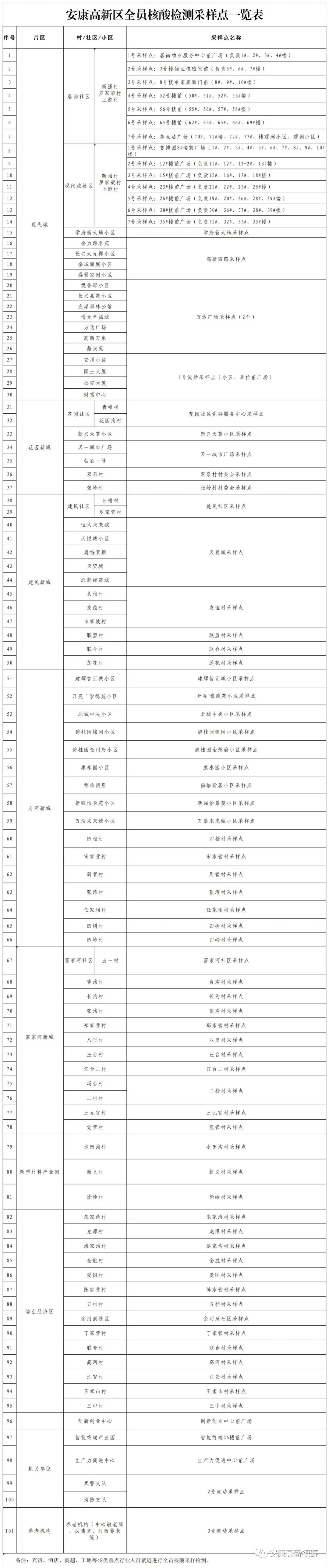 附件:安康高新區(qū)全員核酸檢測(cè)采樣點(diǎn)一覽表