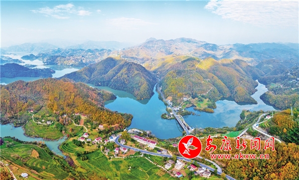 湖抱山,山擁湖,從天柱山上鳥(niǎo)瞰,晨看日出,霞光萬(wàn)道,暮觀日落,湖光瀲滟,尤其是雨后放晴觀云海,輕煙薄霧,縹緲迷離,搖曳于峰之巔,彌漫在宇之殿,疑是凡人撞入九霄。水縹緲無(wú)垠,湖光鏡面,山綿延有致,翡翠如黛,宛如綠寶石鑲嵌。