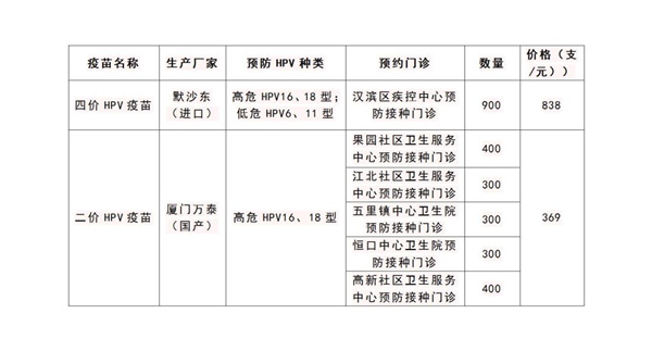 (4)本次僅有二價、四價HPV疫苗,數(shù)量有限,生產(chǎn)企業(yè)后續(xù)將會逐批供應(yīng),請耐心等待;可關(guān)注【漢濱疾控】微信公眾號,及時了解預(yù)約消息。