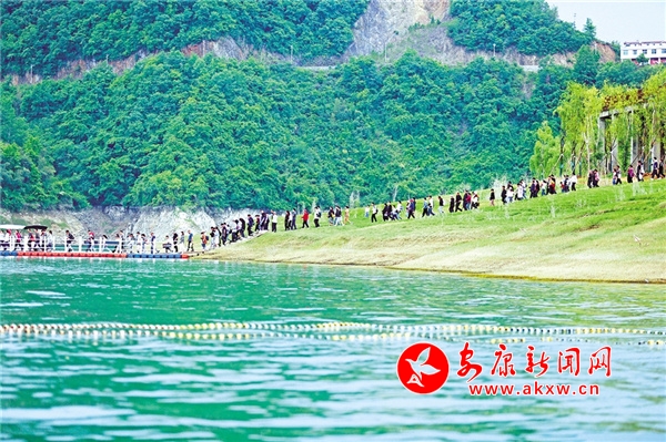 游客抵達(dá)瀛湖景區(qū),在工作人員的疏導(dǎo)下,有序登船,穿好救生衣后,向著碧波漣漪、白云萬(wàn)里進(jìn)發(fā),這樣游湖,就是一幅絕美的畫(huà)卷。