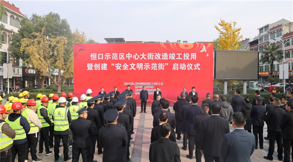 11月22日,恒口示范區(qū)隆重舉行中心大街改造竣工投用暨“創(chuàng)建安全文明示范街”啟動儀式。