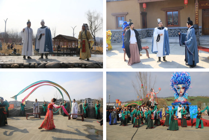 豐收大秧歌、龍騰腰鼓隊(duì)、喜慶蓮響、彩船、花轎大聯(lián)歡、社火、小場(chǎng)子戲等精彩的傳統(tǒng)民俗節(jié)目在桃花源相繼上演。新穎的編排、精彩的表演,令現(xiàn)場(chǎng)游客大飽眼福,叫好聲、喝彩聲此起彼伏。當(dāng)天近25000余名市民游客前往桃花源觀看表演、打卡游園,處處洋溢著“歡歡喜喜過大年”的節(jié)日氣氛。