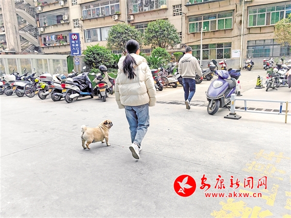 3月16日,安康中心城區(qū)某小區(qū)內(nèi)有市民遛狗不牽繩。鄭時(shí)根 攝