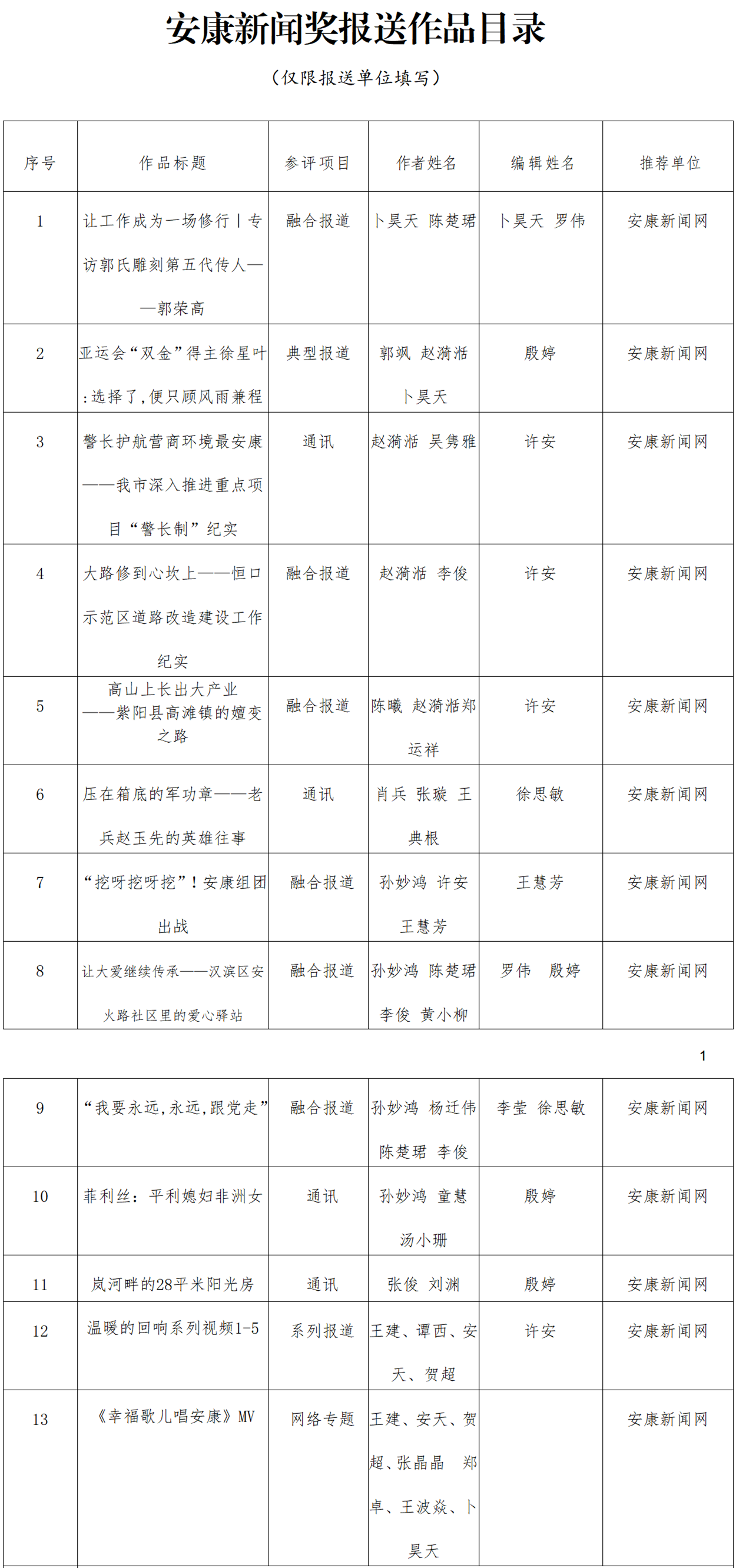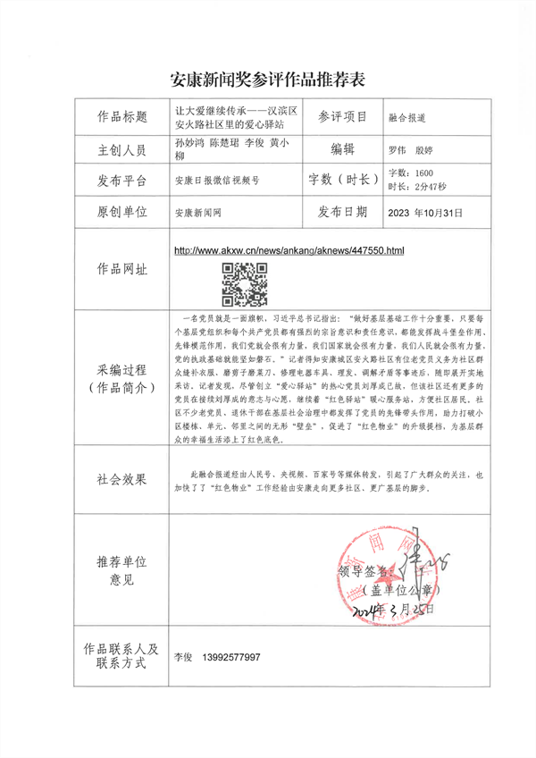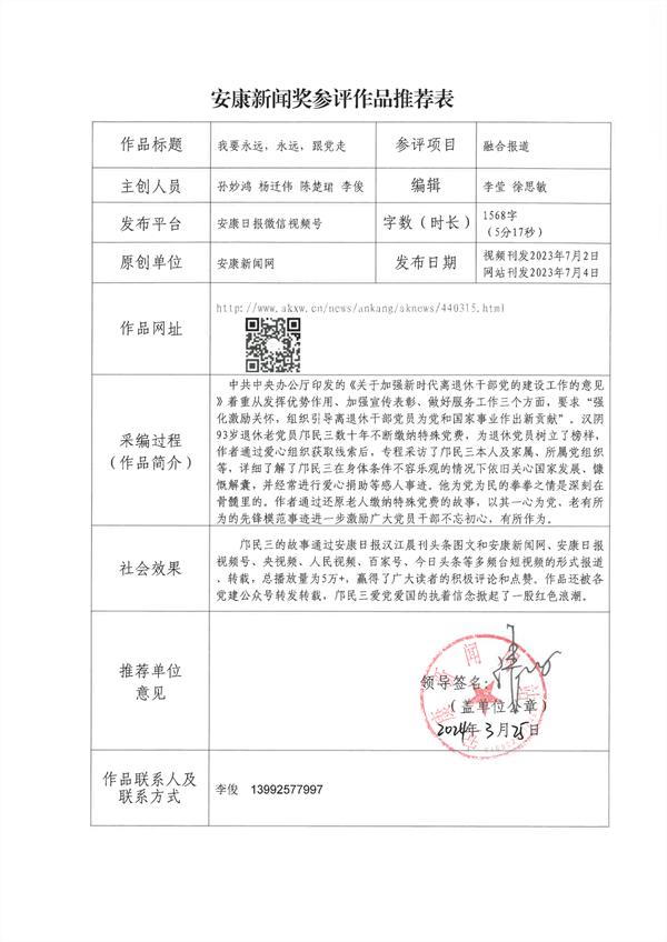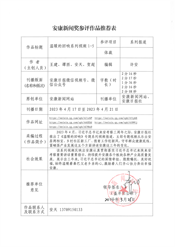 經(jīng)過編委會推薦、社黨委研究決定,擬推薦以下13件新聞作品參評2023年度“安康新聞獎”。公示時間從2024年3月25日至2024年3月29日,公示期為5個工作日。如有不同意見,請向安康日報社機(jī)關(guān)紀(jì)委、新聞管理部反映。