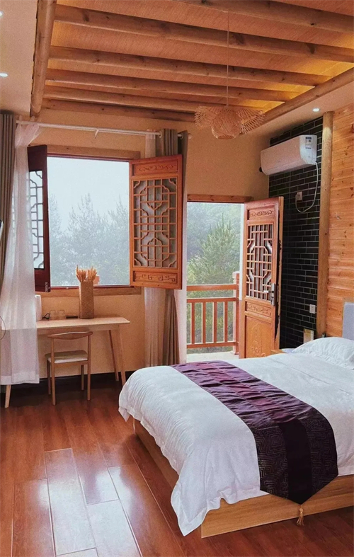 快活嶺民宿依山而建,來到這里,收盡山光水色,古樸而現(xiàn)代,簡約大方,讓您盡情暢游于山水之間。