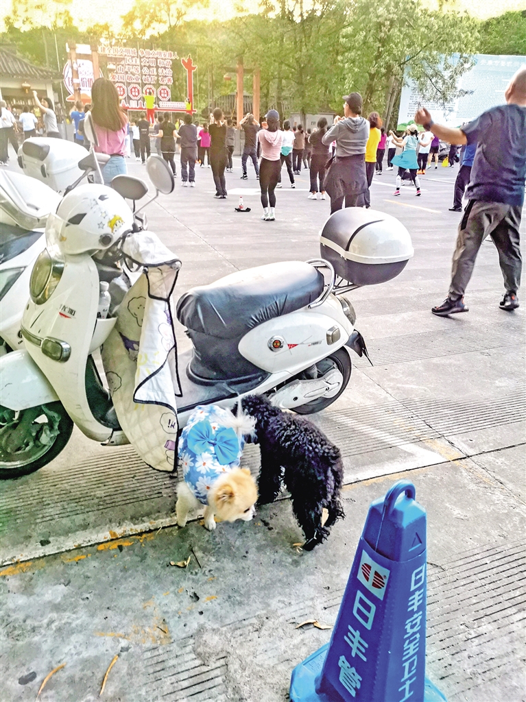 4月17日,在安康香溪洞景區(qū)廣場(chǎng),有市民遛狗不牽繩。