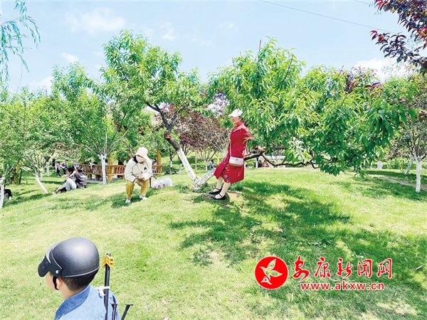 5月5日,在安康高新區(qū)桃花源景區(qū)內(nèi)存在不文明旅游現(xiàn)象,一游客靠坐在桃花樹(shù)干上拍照。胡波 攝