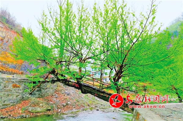 四十多年前,一場(chǎng)百年不遇的洪災(zāi),沖壞堤坎,毀了樹(shù)木,襲了田地,河灘一片狼藉。這棵老柳,根部的土石被洪水沖刷得所剩無(wú)幾,沒(méi)有泥土的支撐樹(shù)干緩緩傾斜,晃悠了一天一夜,頭部漸漸地搭到了東岸堤坎。次日清晨,河?xùn)|有人發(fā)現(xiàn)了,立即喊上四五個(gè)小伙子,從樹(shù)身爬過(guò),去西岸救人、查災(zāi)。緊接著,兩岸的人們爭(zhēng)相過(guò)河到對(duì)岸去救災(zāi)、救苗,又陸續(xù)過(guò)河修路、種地,進(jìn)而過(guò)河上學(xué)、出山,一連數(shù)月都從樹(shù)身爬過(guò),把這樹(shù)干當(dāng)作橋身,你來(lái)我往地通行于兩岸。于是,這道天然“樹(shù)橋”,既凝聚了生產(chǎn)救災(zāi)力量傳遞了兩岸情感,又溝通了人流、物流、信息流。