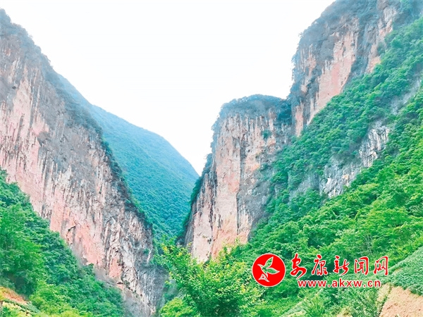 白巖坡就是大巴山的杰作,地質(zhì)斷層形成的兩座山峰如同兩扇大門(mén),擋在通往巴山的路途上,展示著什么是“一夫當(dāng)關(guān),萬(wàn)夫莫開(kāi)”。歲月的風(fēng)霜雪雨、日曬夜露將山體侵染成灰白相間的印跡,像極了牛角上的紋路,生命力極強(qiáng)的花草樹(shù)木在懸崖峭壁上瘋狂生長(zhǎng),一條不知趣的小溪硬是從兩山夾峙中拼命擠過(guò),切出一道深澗,絮絮叨叨著“水可穿石”。從巖石里、溶洞中、草木根沁出的泉水,爭(zhēng)先恐后地竄進(jìn)小溪,歡歌嬉戲。停車(chē)駐足,一股清新空氣不打招呼地沁入心脾,全身舒坦。抬頭仰望,一線(xiàn)天里寫(xiě)滿(mǎn)花草樹(shù)木、藍(lán)天白云、風(fēng)花雪月,讓人心曠神怡,仿佛到了世外桃源。