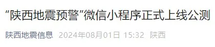 “陜西地震預警”微信小程序正式上線公測