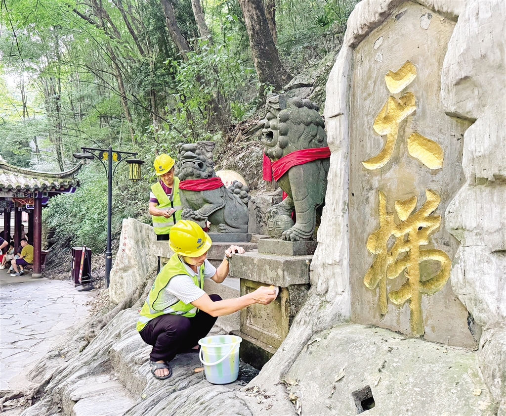 8月22日,工作人員正在香溪洞開展景區(qū)設(shè)施清理工作。據(jù)施工現(xiàn)場負責人介紹,香溪洞風景名勝區(qū)管理局將會對供水、供電、照明等設(shè)施進行升級改造。(鄒一銘 攝)