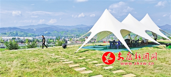 當(dāng)我賞罷一馬平川的恒口貢米基地,邁步田園后面的緩坡,走過以“稻夢時(shí)光”統(tǒng)一冠名的彩虹路、孝義文化長廊、研學(xué)基地、民宿群落,來到土坡頂臺上的這塊綠地,目光所及,仍屬“稻夢”系列:碧綠的草坪、雪白的帳篷、深紅的房子、鮮艷的花卉,組成了視野開闊、環(huán)境幽靜的“稻夢時(shí)光露營基地”。