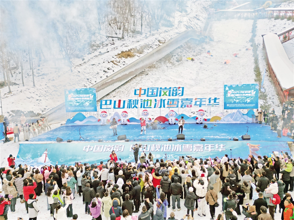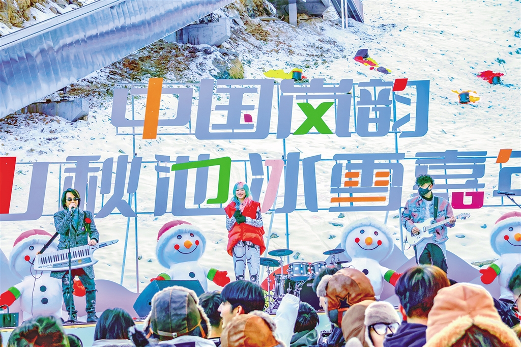 本次演歌會還精心策劃了雪中尋寶、雪地摔跤、雪地拔河、激情傳雪等豐富多彩的娛樂活動,實(shí)景市集隧道、玩雪區(qū)、冰雕區(qū)等地也熱鬧非凡,游客們紛紛打卡拍照,美食區(qū)的庖湯宴、特色小吃等各類美食更是讓游客駐足品鑒。雪地娛樂、美食品嘗與音樂大合唱的碰撞,讓整個巴山秋池的現(xiàn)場激情澎湃、熱火朝天,為線上線下的游客帶來新鮮刺激的感官體驗(yàn)。
