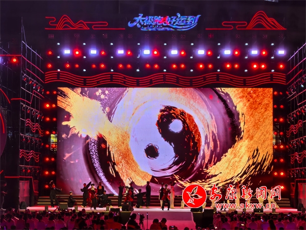 夜幕降臨,開幕式現(xiàn)場美輪美奐、氣勢恢宏。燈光秀、歌舞秀拉開活動帷幕,博得雷鳴般的掌聲。21個(gè)鎮(zhèn)代表隊(duì)登臺亮相?!盁熁ㄐ恪辫矈Z目,化作多彩光芒,點(diǎn)亮太極城的夜空。伴隨著現(xiàn)場觀眾的激情吶喊,文藝節(jié)目相繼上演,歌伴舞《沖呀!去旬陽》、旬陽好物旬陽非遺推介、舞蹈《舞動長樂紅》、民歌聯(lián)唱《姐不約郎郎不來》、千人復(fù)誦《太極·旬陽賦》、太極秀《太極江湖》、千人齊跳《太極舞》等節(jié)目,充分展示了旬陽的文化底蘊(yùn)、旅游資源、人文風(fēng)情,掌聲如潮、歡聲如雷。中國內(nèi)地歌手屠洪剛演唱的歌曲《你》《江山無限》《精忠報(bào)國》瞬間將現(xiàn)場氣氛燃爆。