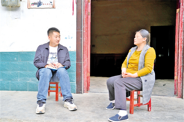 彭方睿入戶進(jìn)行政策宣傳,并了解興坪村農(nóng)戶收入情況