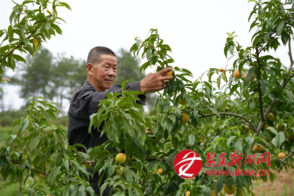 雙乳鎮(zhèn)江河村的黃桃產(chǎn)業(yè)園里也是一派豐收忙碌的喜人景象。成片的桃樹(shù)上,一顆顆成熟的黃桃身披紙質(zhì)“防護(hù)衣”,密密麻麻掛滿枝頭,微風(fēng)拂過(guò),果香撲鼻,令人饞涎欲滴。務(wù)工群眾在林間來(lái)回穿梭,忙著采摘、運(yùn)輸成熟的黃桃,桃林間一片繁忙。