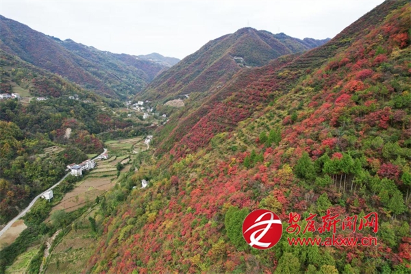 初冬時節(jié),地處秦嶺南麓的漢濱區(qū)早陽鎮(zhèn)境內,滿山的紅葉把山村裝扮得美如一幅畫,引得眾多游客和市民來這里賞紅葉、觀美景,盡享生態(tài)之美。圖為無人機視角下的早陽紅葉美景。 (通訊員 周濤)