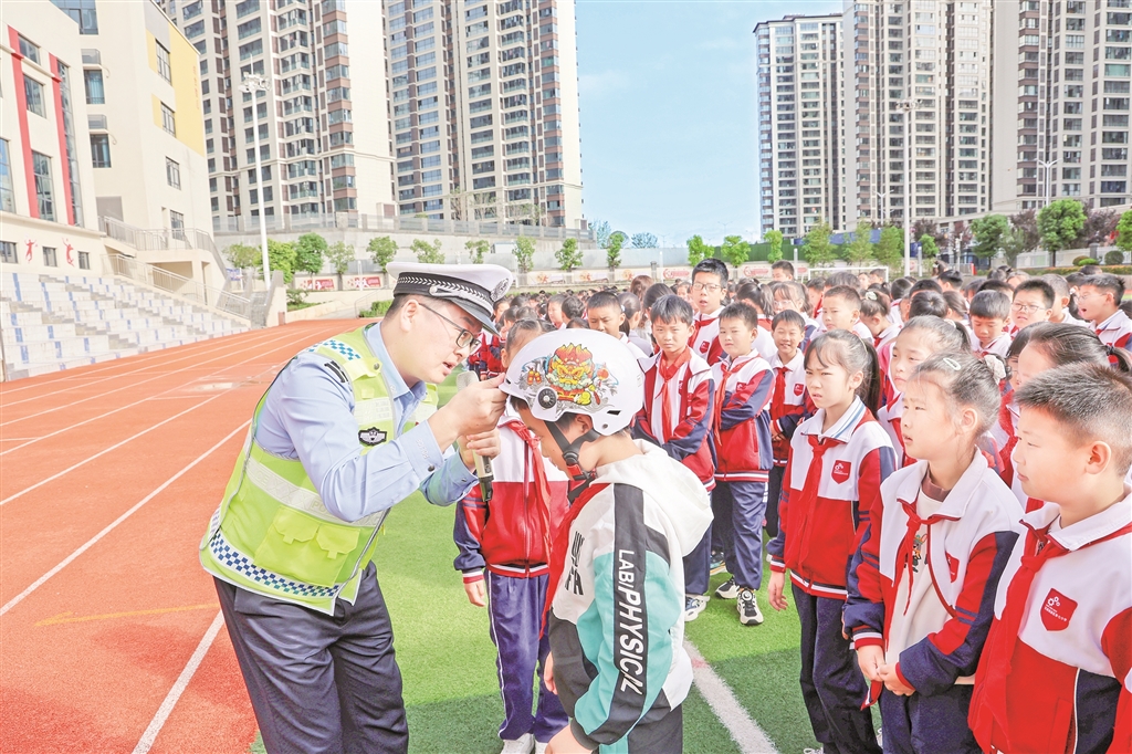 9月24日,高新區(qū)在高新七小開展“我勸媽媽戴頭盔”活動