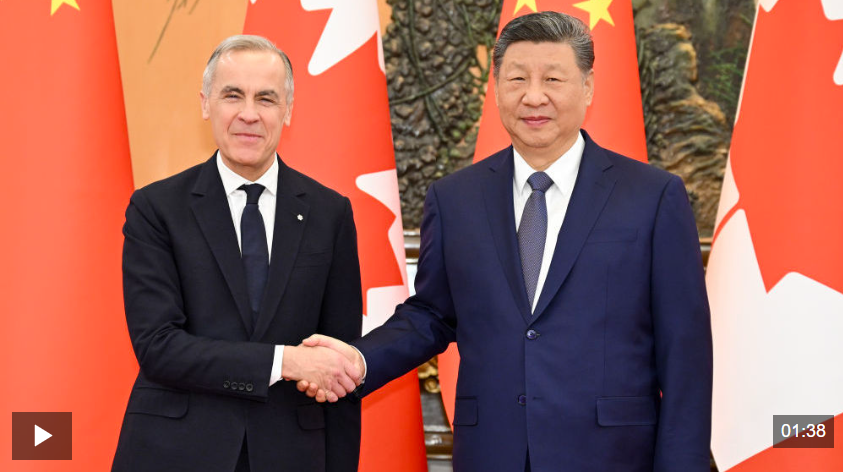 1月16日上午,國家主席習(xí)近平在北京人民大會堂會見來華進行正式訪問的加拿大總理卡尼。