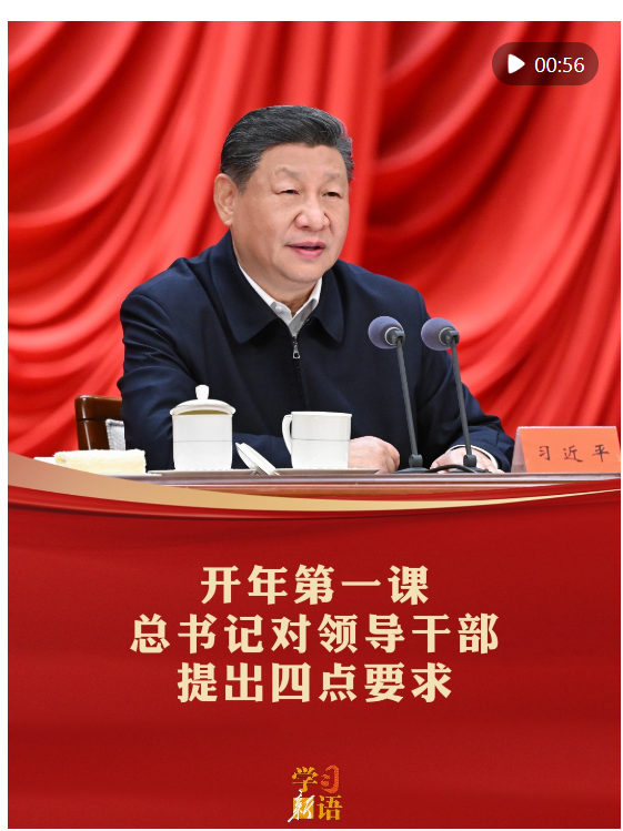 1月20日,習(xí)近平總書記在省部級主要領(lǐng)導(dǎo)干部學(xué)習(xí)貫徹黨的二十屆四中全會精神專題研討班開班式上發(fā)表重要講話,對各級干部特別是領(lǐng)導(dǎo)干部提出四點(diǎn)要求。一起學(xué)習(xí)領(lǐng)會。