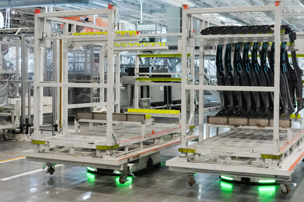 從研發(fā)制造到測(cè)試應(yīng)用,北京發(fā)揮汽車(chē)產(chǎn)業(yè)長(zhǎng)期積累,積極擁抱新品牌、新技術(shù),新模式,新能源汽車(chē)產(chǎn)業(yè)蓬勃發(fā)展,產(chǎn)業(yè)鏈供應(yīng)鏈不斷鞏固完善。這是自主移動(dòng)機(jī)器人在北京小米汽車(chē)工廠搬運(yùn)物資(2025年6月16日攝)。