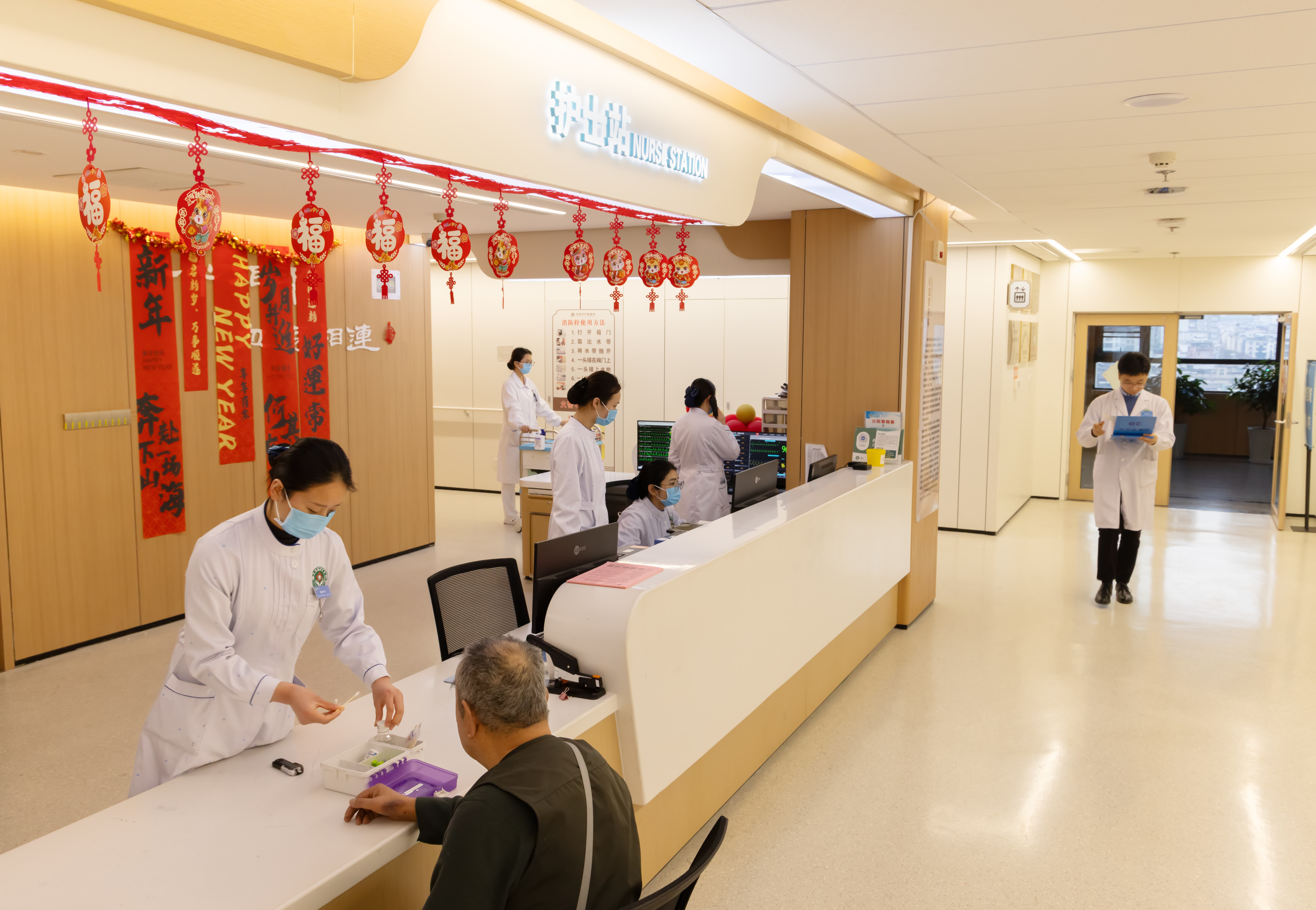 2月18日,安康市中醫(yī)醫(yī)院醫(yī)護工作者和后勤服務中心的人員堅守崗位,用行動詮釋別樣“年味兒”。郭圣杰 攝
