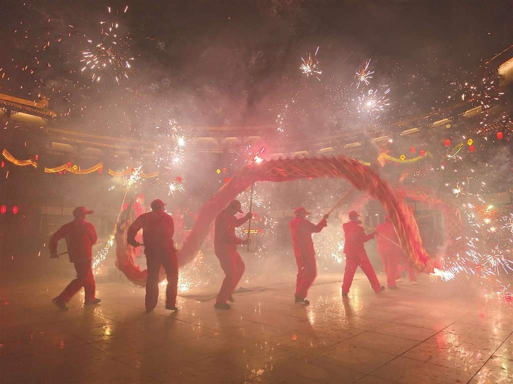 此次龍頭村春節(jié)活動,不僅延續(xù)了“八大件年夜飯”等傳統(tǒng)習(xí)俗,更通過農(nóng)文旅融合創(chuàng)新,讓非遺“活起來”、鄉(xiāng)村“旺起來”。王韜 攝
