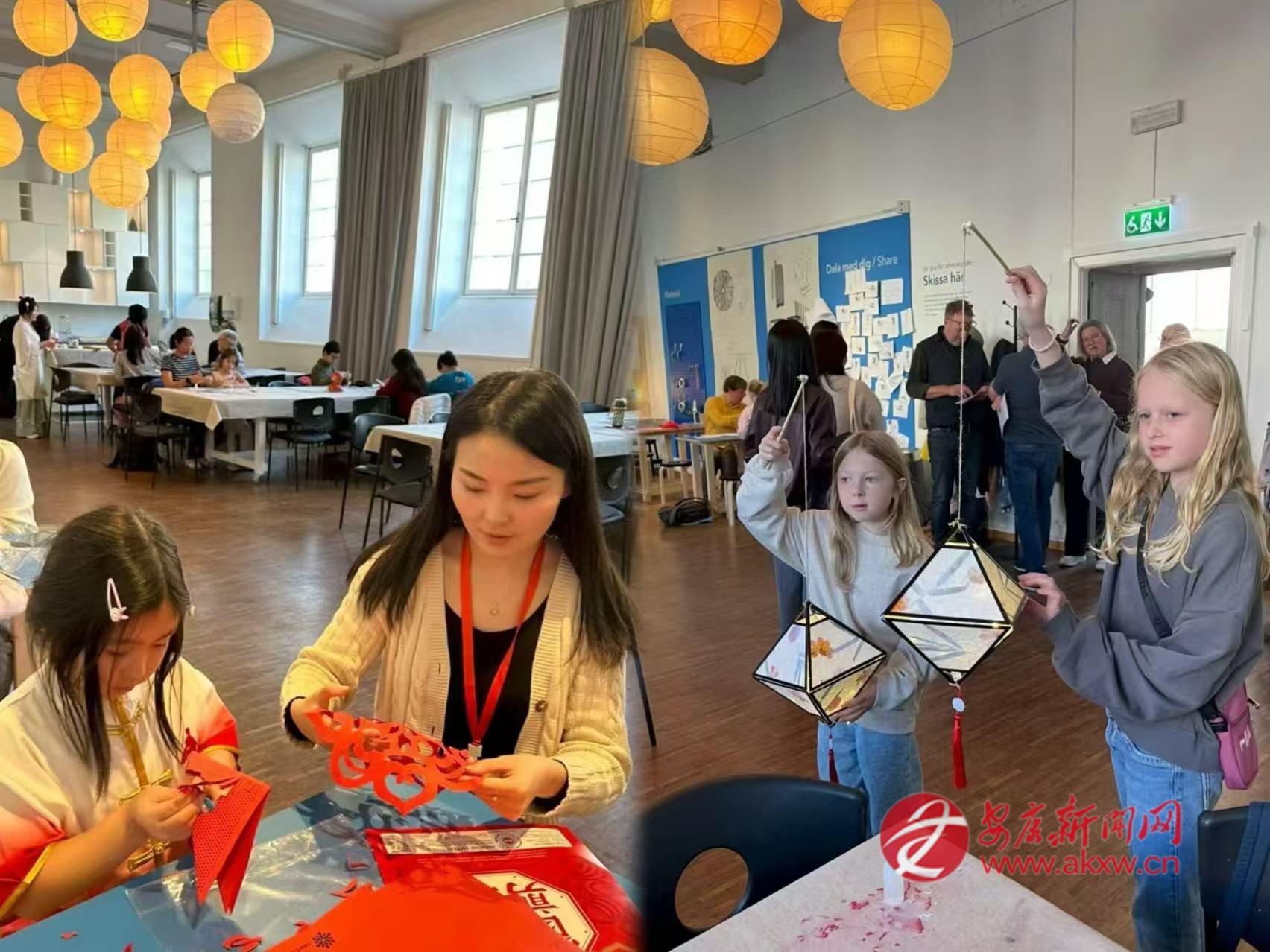 2025年中秋節(jié),邱萌受邀參加哥德堡總領(lǐng)館舉辦的文化活動(dòng),在哥德堡市立博物館的展廳里,她教當(dāng)?shù)睾⒆觽冏鰺艋\、剪剪紙。邱萌和孩子們一起用宣紙折疊成燈籠,讓瑞典人得以近距離觸摸中國節(jié)日。有人好奇地問起中秋的月亮,她便講起嫦娥奔月的傳說,講起月餅的寓意,講起“千里共嬋娟”的詩句。博物館里點(diǎn)亮了許多盞燈籠,每一盞都映照著孩子們專注而好奇的臉龐。