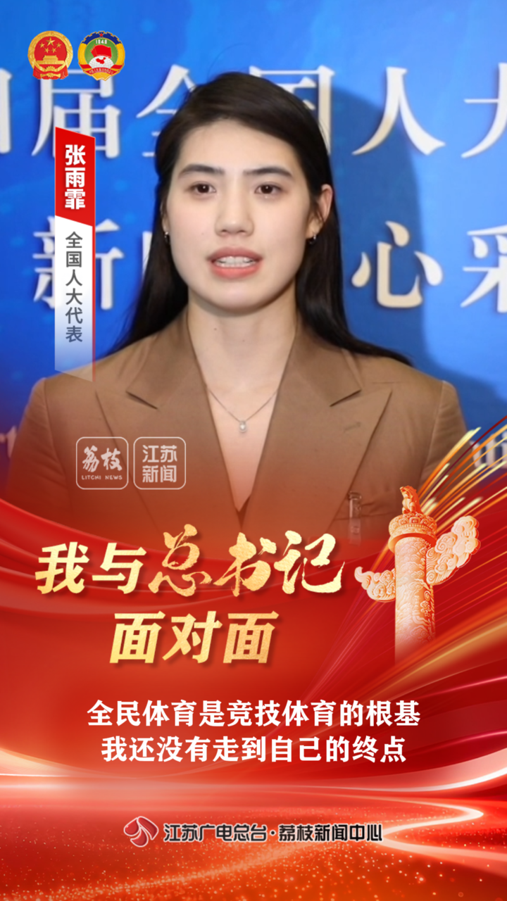 南京體育學院游泳隊運動員、游泳學院副院長張雨霏代表,向總書記匯報了“蘇超”等大眾體育對競技體育的促進作用,她自己參加奧運的“戰(zhàn)績”和對未來征戰(zhàn)賽場的目標和規(guī)劃。