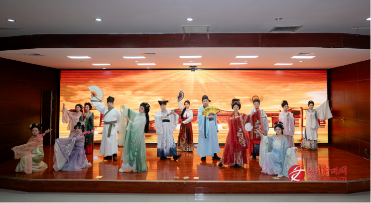 花枝映雅韻,羅衣展風(fēng)姿?;顒?dòng)現(xiàn)場(chǎng),女員工們褪去職業(yè)裝,換上襦裙、曲裾等各式漢服,簪花綰發(fā)、輕搖團(tuán)扇,一顰一笑間皆是溫婉雅致。伴隨著悠揚(yáng)的古樂(lè),一場(chǎng)精心編排的漢服秀驚艷開(kāi)場(chǎng),女職工代表緩步登臺(tái),或頷首低眉、或淺笑嫣然,在詩(shī)詞誦讀的映襯下,將中華傳統(tǒng)服飾的典雅之美演繹得淋漓盡致?!敖韼讲蛔岉毭迹毭家鄳蜒乓狻?,更令人驚喜的是,四位男士代表身著儒巾青衫現(xiàn)身助陣,平日里雷厲風(fēng)行的他們,化身謙謙君子,步履從容間盡顯儒雅風(fēng)范,現(xiàn)場(chǎng)掌聲與歡笑聲此起彼伏。