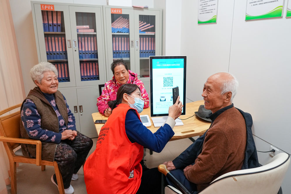 2025年10月23日,老人在山東省淄博市張店區(qū)馬尚街道金石社區(qū)日間護理中心測量健康數(shù)據(jù)。新華社記者 朱崢 攝