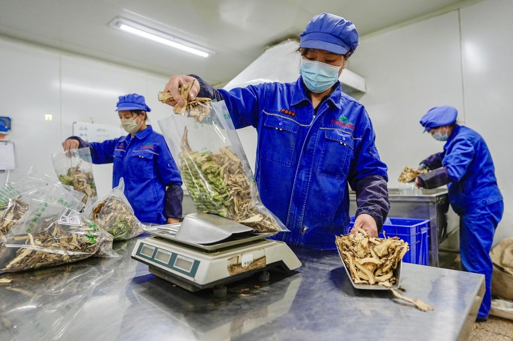 2026年1月26日,工作人員在寧夏固原市隆德縣一家藥材加工企業(yè)分包當歸。新華社記者 楊植森 攝
