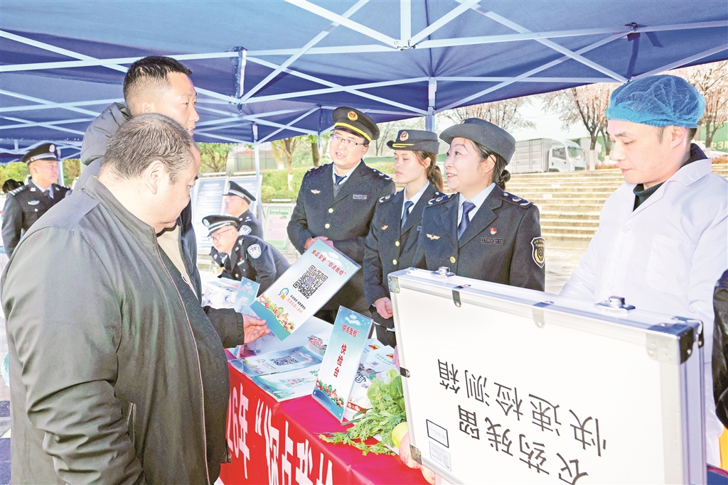 3月14日,在2026年陜西省“3·15”國際消費者權(quán)益日主題活動暨安康市“3·15”集中宣傳活動中,市場監(jiān)管執(zhí)法人員正在宣傳講解農(nóng)殘監(jiān)測。