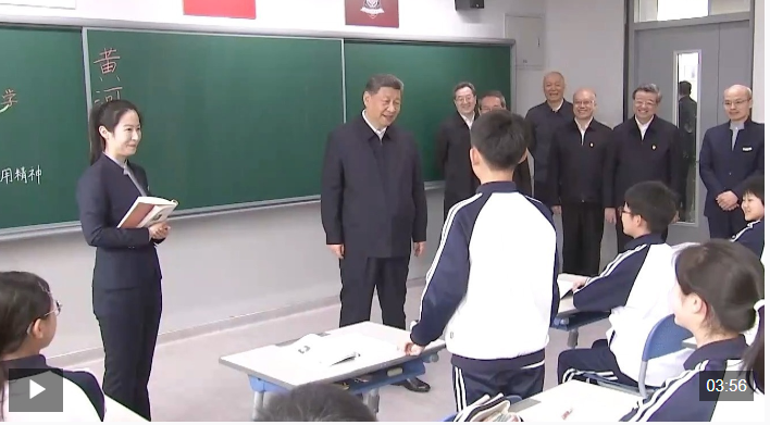 初一(2)班,一堂語(yǔ)文課正在進(jìn)行中。習(xí)近平總書記走進(jìn)這間教室,同師生交談,了解教學(xué)情況。