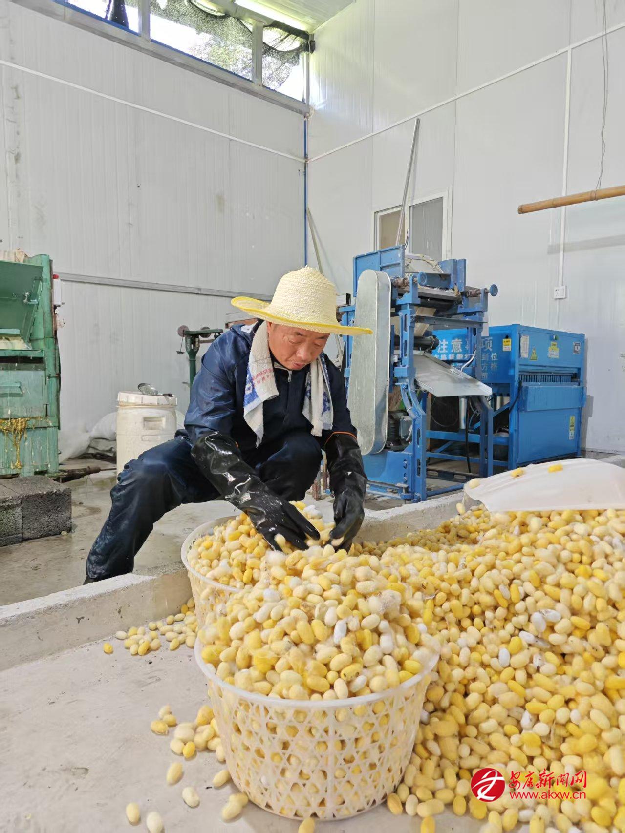 “以前養(yǎng)蠶全靠經(jīng)驗(yàn),溫濕度把控不好,蠶繭產(chǎn)量低?,F(xiàn)在有了智能設(shè)備和技術(shù)指導(dǎo),養(yǎng)蠶更輕松,收入也更高了?!崩罴液哟屦B(yǎng)蠶大戶(hù)王興義感慨道。作為產(chǎn)業(yè)帶頭人,他投資200余萬(wàn)元成立家庭農(nóng)場(chǎng),配套建設(shè)標(biāo)準(zhǔn)化養(yǎng)蠶室和加工廠房,引進(jìn)滑輪升降式省力化蠶臺(tái)、自動(dòng)化養(yǎng)蠶設(shè)備,實(shí)現(xiàn)了從種養(yǎng)到加工的全鏈條升級(jí)。