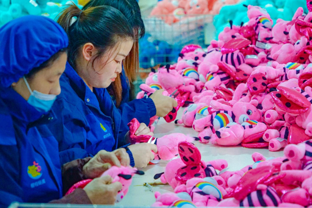 毛絨玩具是安康特色產(chǎn)業(yè)體系中的另一個(gè)重要代表。很多人可能不知道,目前安康已發(fā)展成為全國第四大毛絨玩具生產(chǎn)基地,獲評“中國毛絨玩具產(chǎn)業(yè)新都”。截至2025年底,安康全市累計(jì)建成毛絨玩具和紡織企業(yè)811家(點(diǎn)),吸納就業(yè)群眾超2.2萬人,實(shí)現(xiàn)年產(chǎn)值100.21億元。企業(yè)日產(chǎn)能達(dá)到150萬只,產(chǎn)品出口全球80多個(gè)國家和地區(qū)。