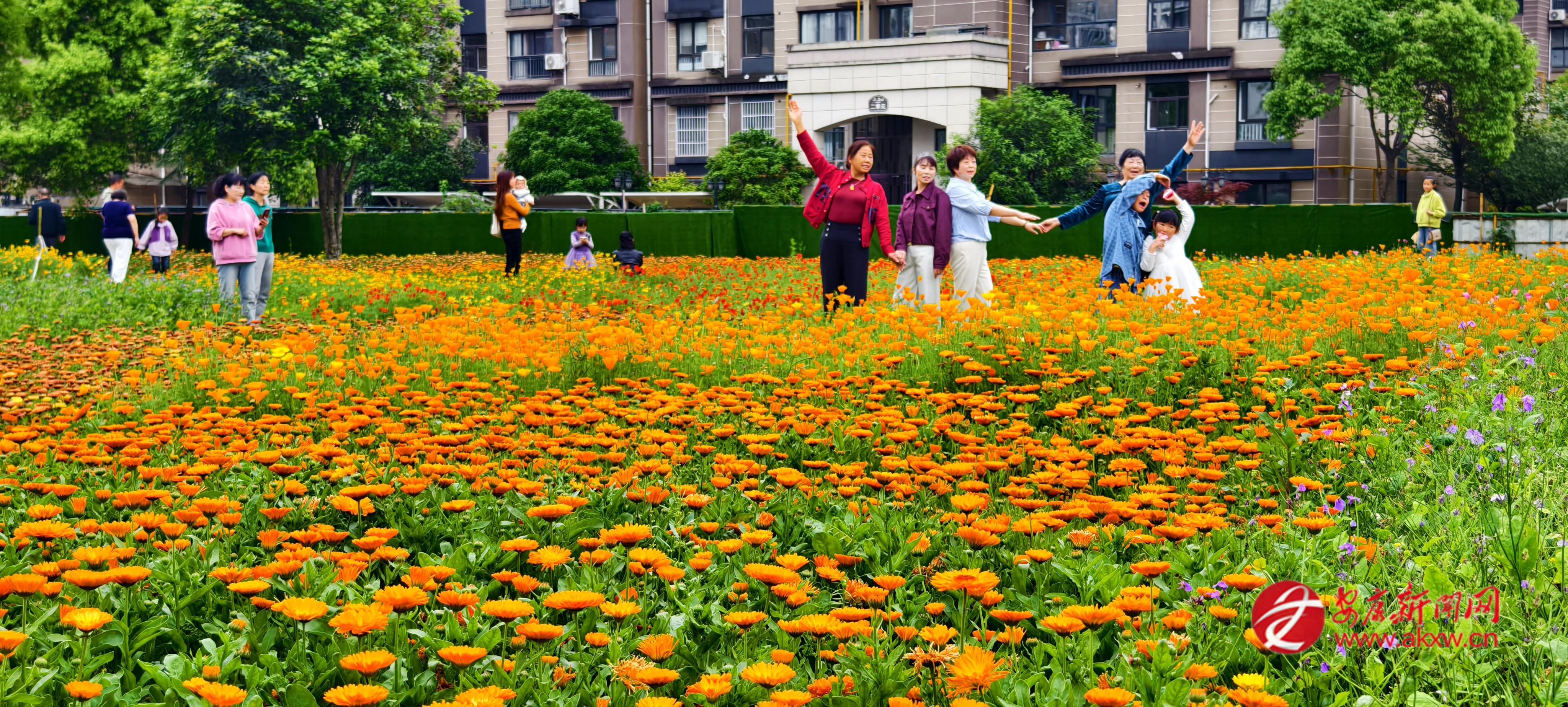 近日,在漢陰縣三沈文化產(chǎn)業(yè)園,成片的二月蘭、花菱草與金盞菊迎來(lái)盛花期。市民們漫步花海欣賞美景、拍照打卡,享受休閑時(shí)光。王磊 攝
