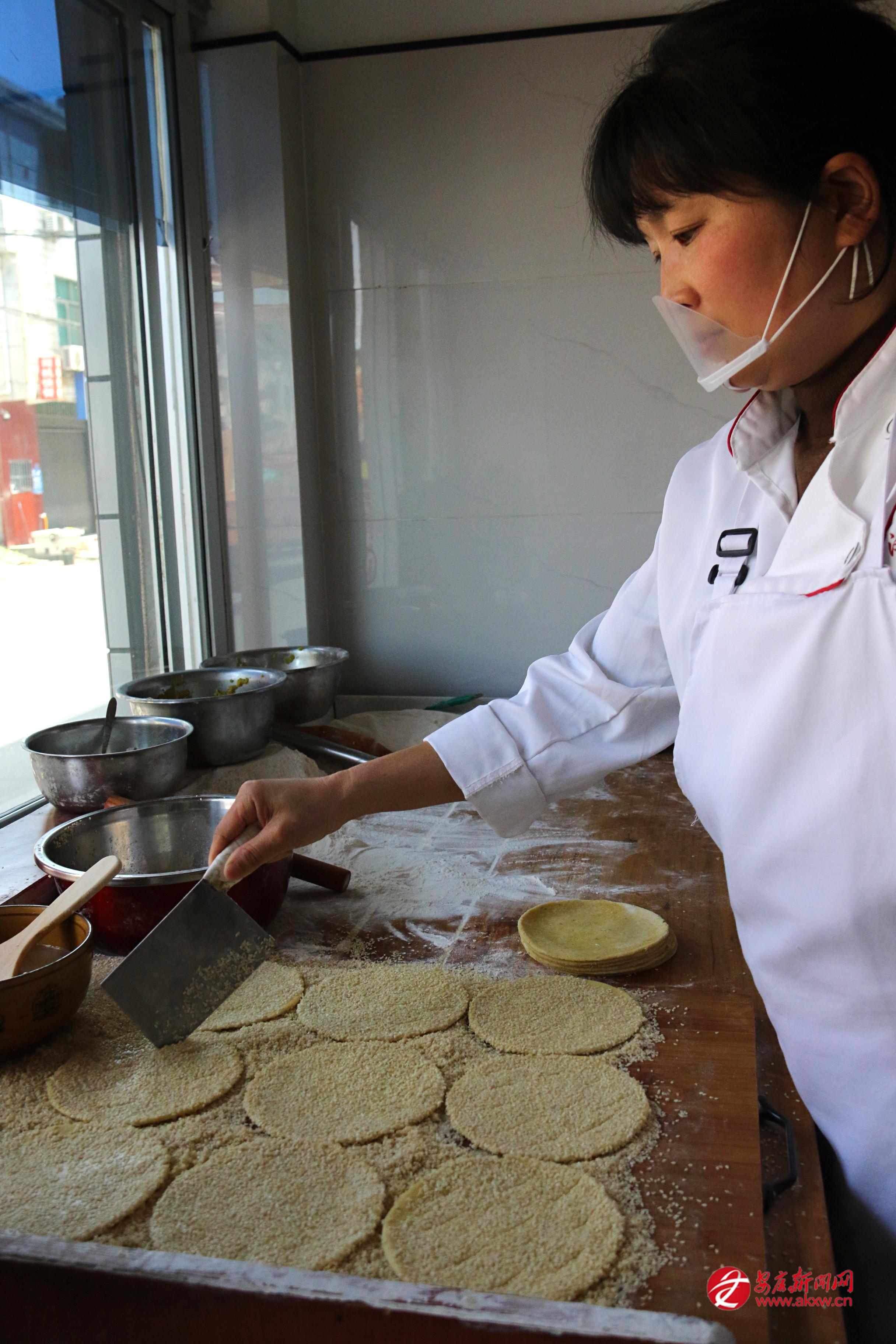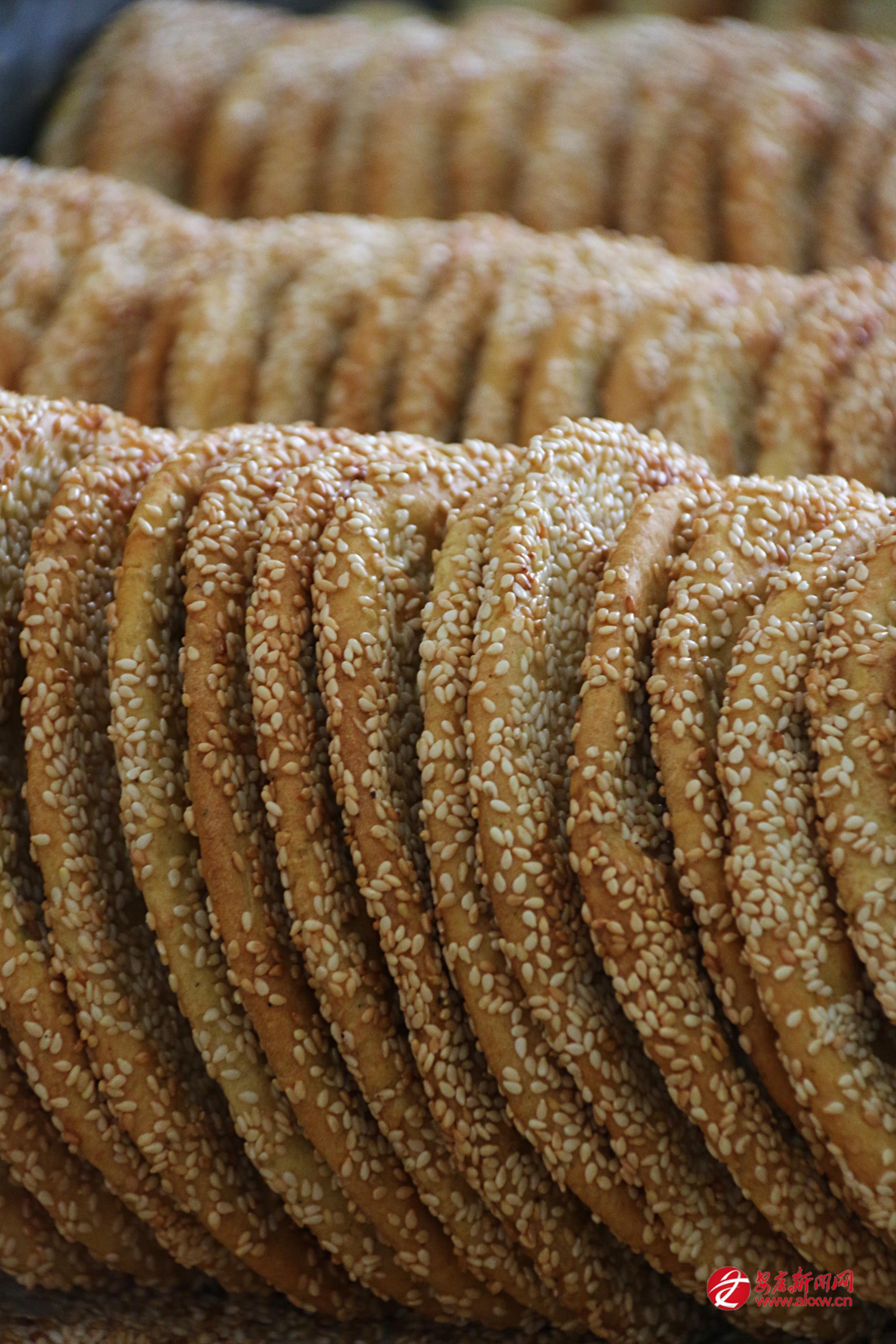 炕炕饃最講究的是“酥”。這酥不是靠油多硬炸出來的,而是用油酥一層一層疊進去的。做油酥得用豬油和菜油兩樣,再配上五香粉,小火炒得噴香。面團是老面發(fā)的,揉到光潤,再把油酥裹進去,搟開,折起,再搟開,反復(fù)好幾回。這時候的面已經(jīng)有了一層層薄薄的紋理,像書頁似的。搟好的餅坯中間薄、四周略厚,抹一層水,粘上白芝麻——可以只粘一面,叫“一面麻”;也可以兩面都粘,叫“二面麻”。然后放進一種特制的鐵鏊子里,上下都有炭火,夾著慢慢炕。中間還得翻一兩次身。